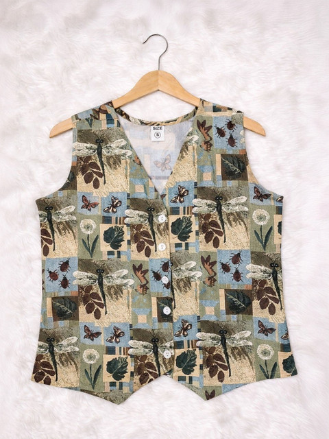 Style this printed cotton waistcoat with high-waist trousers or denim shorts and minimal accessories for an effortless smart-casual look.