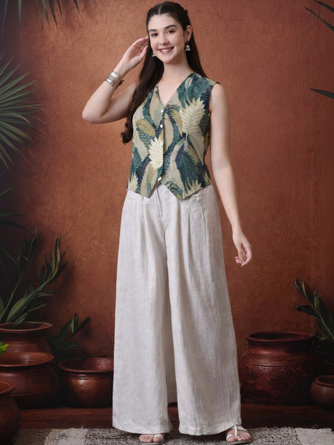 Style this printed cotton waistcoat with high-waist trousers or denim shorts and minimal accessories for an effortless smart-casual look.