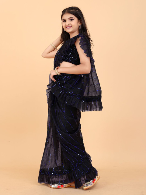 The blouse worn by the model might be for modelling purpose only. Check the image of the blouse piece to understand how the actual blouse piece looks like.