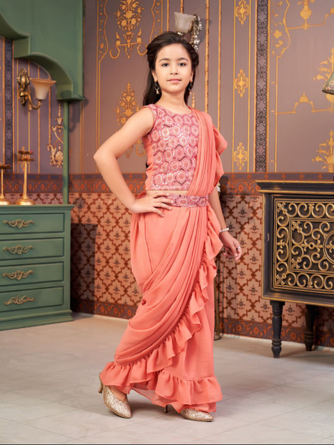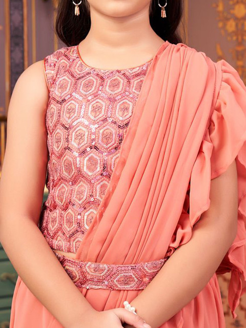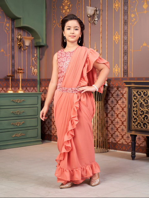 BAESD Girls Sequinned Poly Georgette Ready To Wear Saree