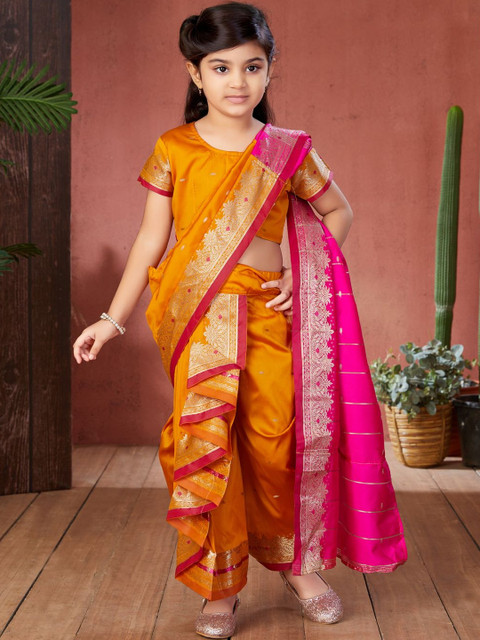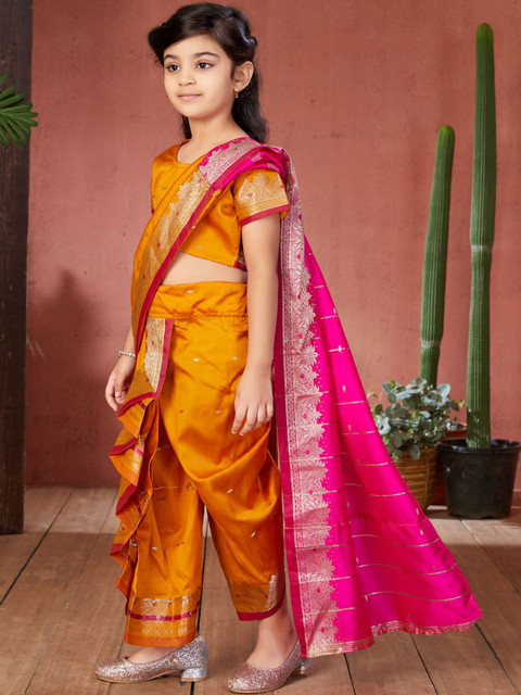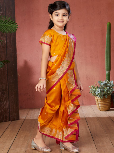 BAESD Girls Woven Design Zari Dhoti Saree With Stitched Blouse