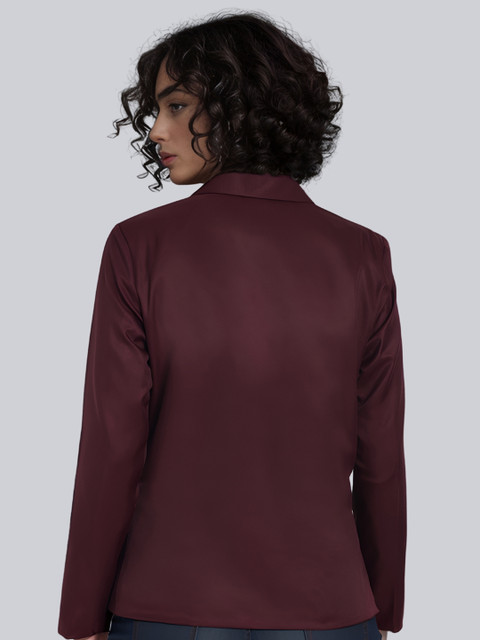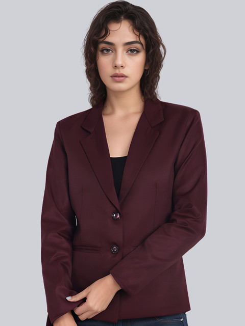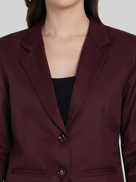 Maroon solid regular-fit blazer, has a single-breasted with double button closure, notched lapel collar, button closure, long sleeves, two pockets & ventless