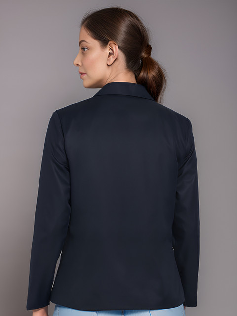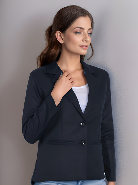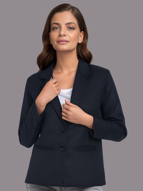 Navy Blue solid regular-fit casual blazer, has a notched lapel, long sleeves, single-breasted with double button closure and two pockets