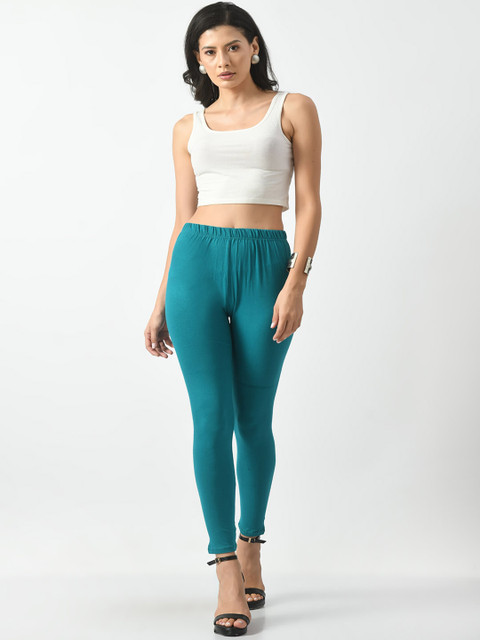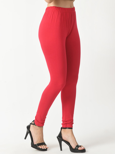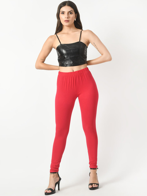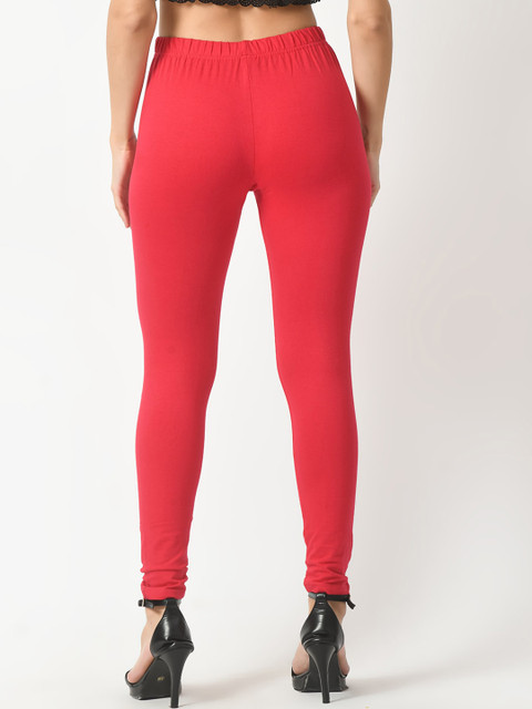 Pack of 2 solid slim fit ankle-length leggings in red & teal blue, each has an elasticated waistband and slip-on closure