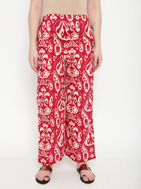 Maroon & beige printed regular-fit palazzo, has elasticated waistband with slip-on closure and flared hem