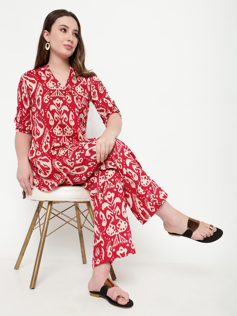 The vibrant print and comfortable fabric make it a perfect addition to my wardrobe. The palazzos are so flowy and elegant, while the tunic is stylish and chic. A great combo for a casual yet stylish look.