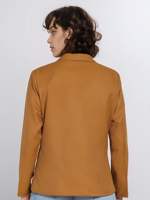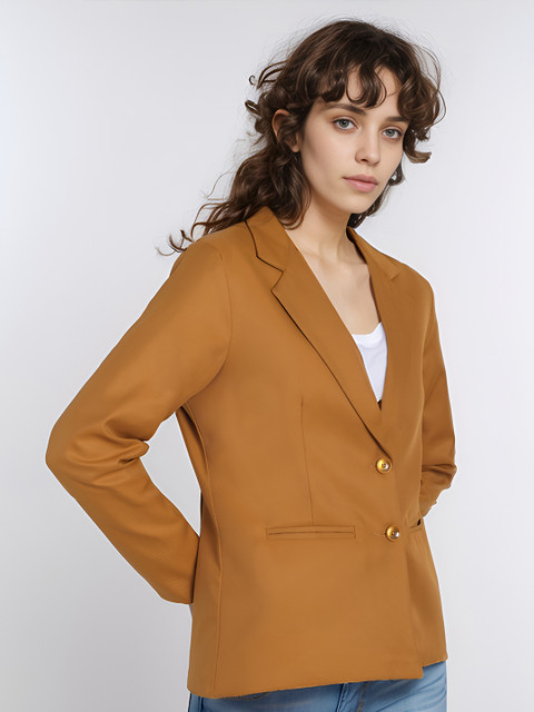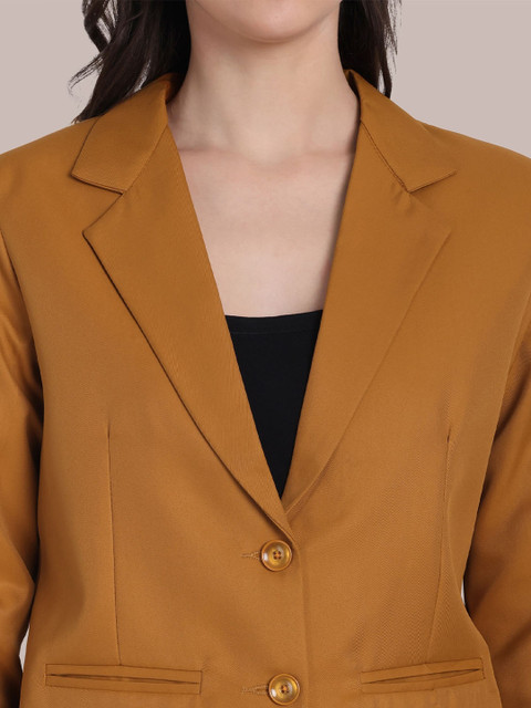 Yellow solid regular-fit casual blazer, has a notched lapel, long sleeves, single-breasted with double button closure and two pockets