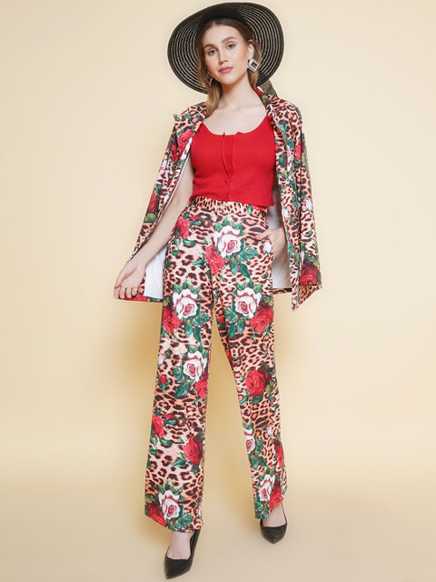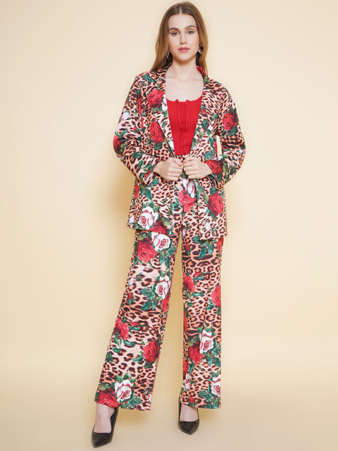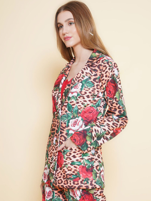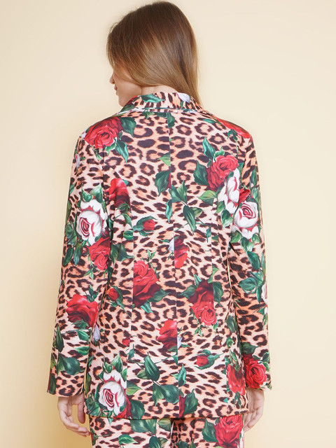 Brown printed regular-fit casual blazer, has a notched- lapel collar, long sleeves, single-breasted with button closure, two welt pocket with ventless hem