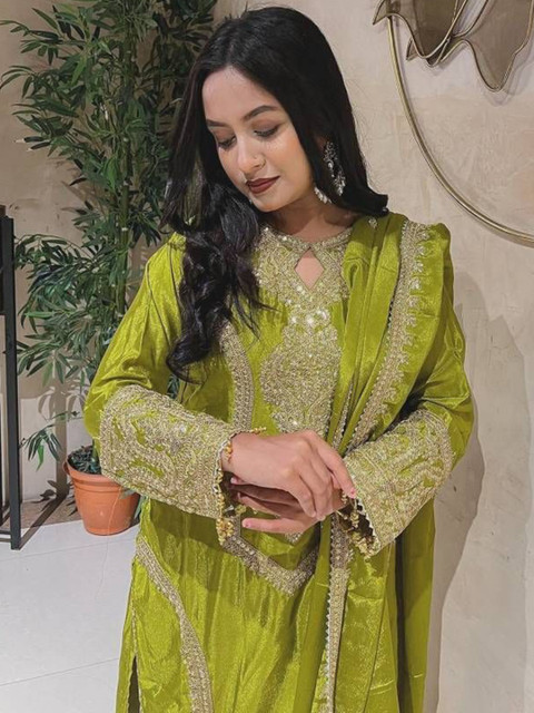 Green embroidered Kurta with Trousers with dupatta