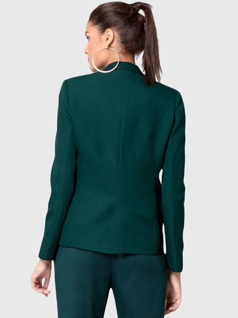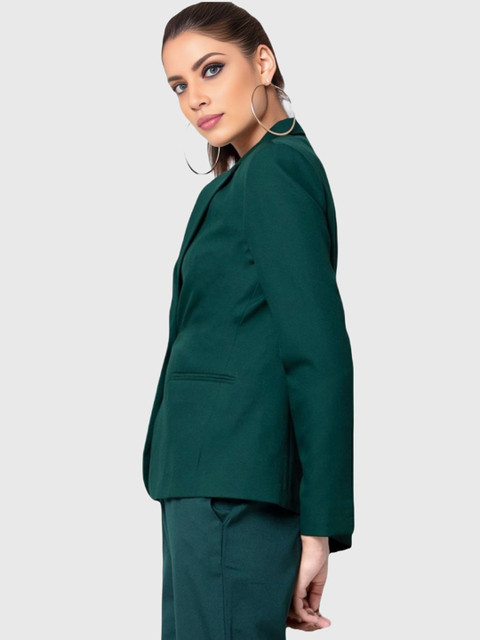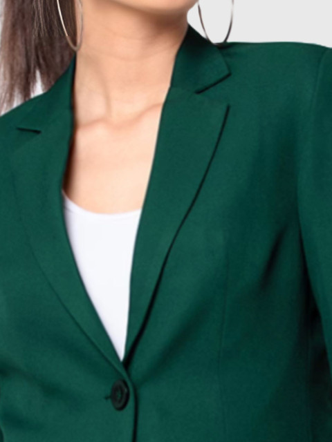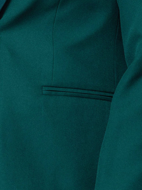 Bottle green solid regular-fit, has a single-breasted with double button closure, notched lapel collar, button closure, long sleeves, two pockets & ventless