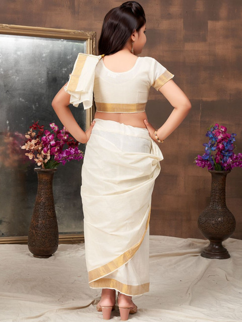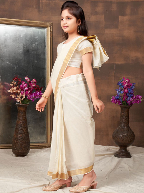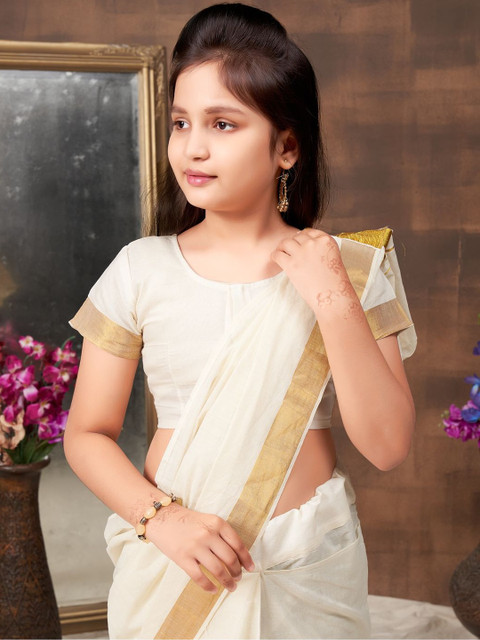 - Cream-coloured and beige saree