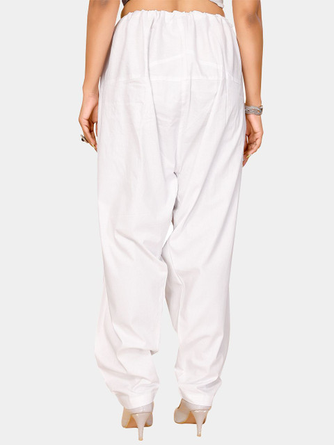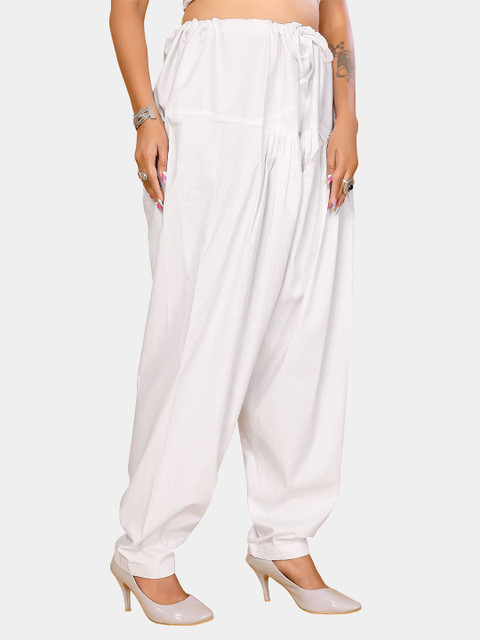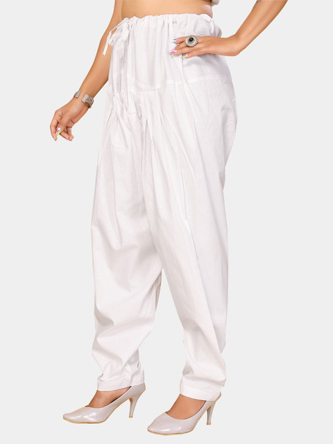 White solid straight fit salwar has a waistband with drawstring closure