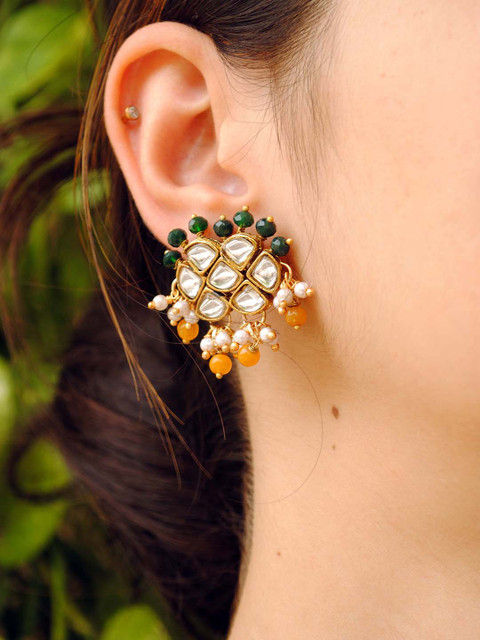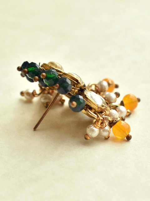 Gold-toned, orange & green contemporary studs
