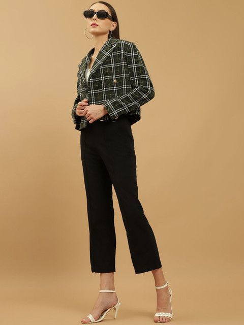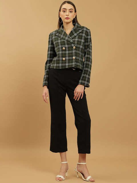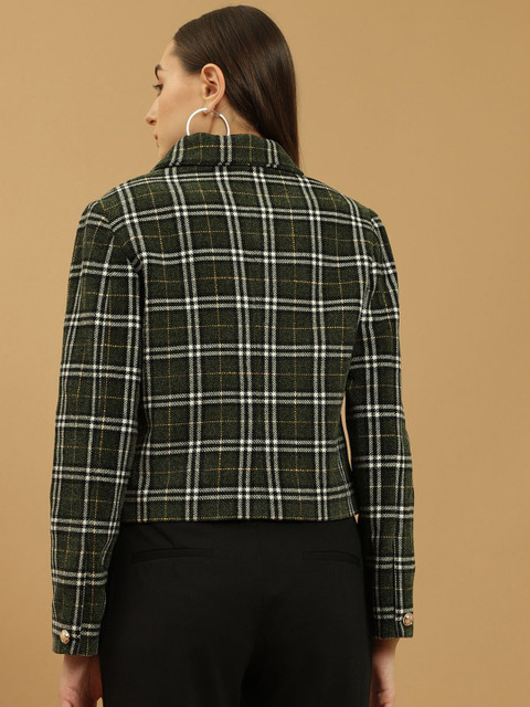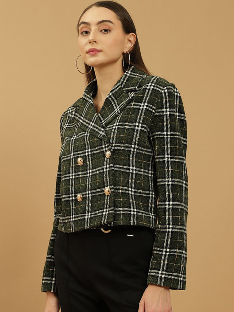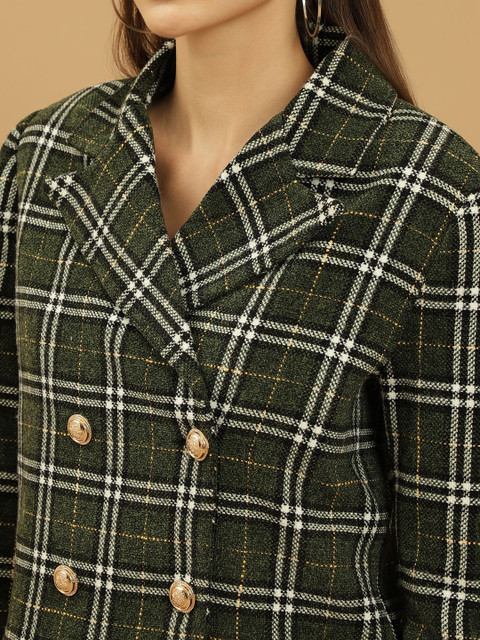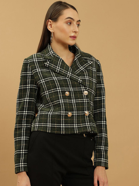 Green & white printed regular-fit casual blazer, has a notched lapel, long sleeves, double-breasted with button closure and a ventless back hem
