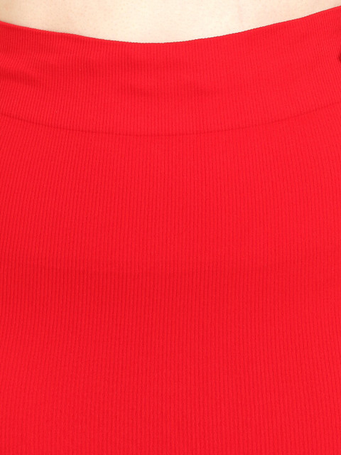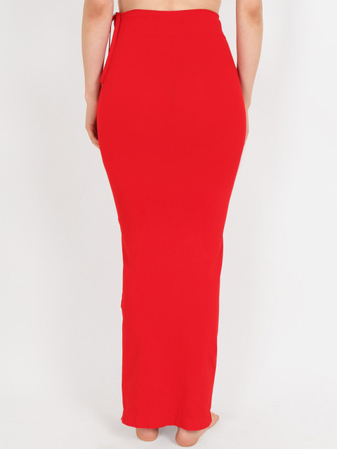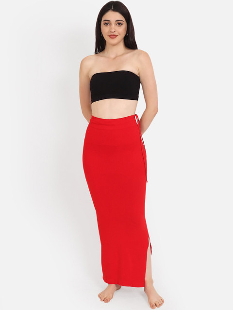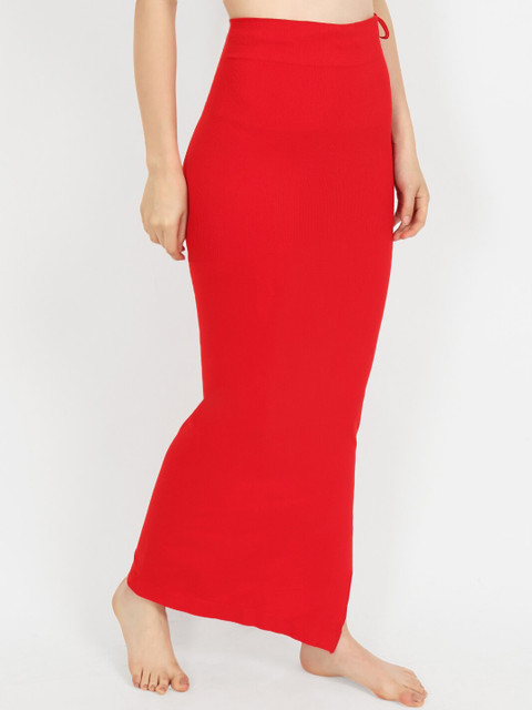 Red solid saree shapewear, has an elasticated waistband with drawstring closure, a slit and straight hem