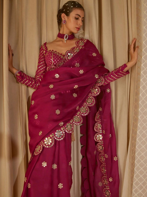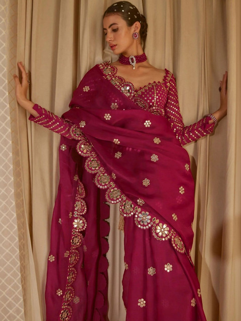 Being Naari Embellished Mirror Work Pure Georgette Heavy Work Saree