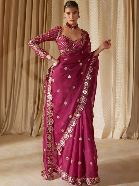• Fuchsia and maroon saree