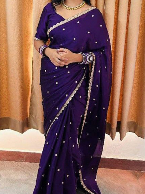 - Purple and gold-toned saree