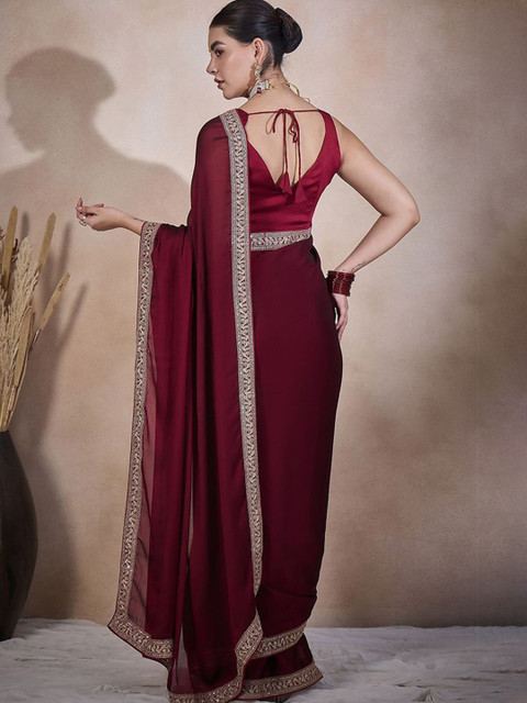 The blouse worn by the model might be for modelling purpose only. Check the image of the blouse piece to understand how the actual blouse piece looks like.