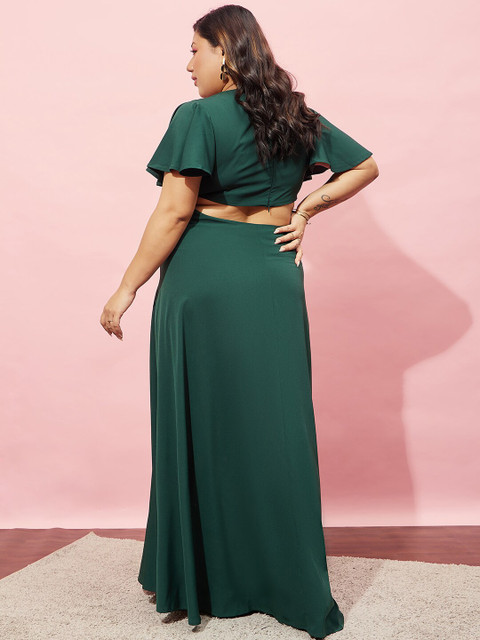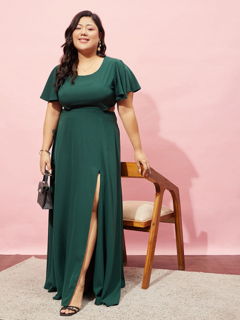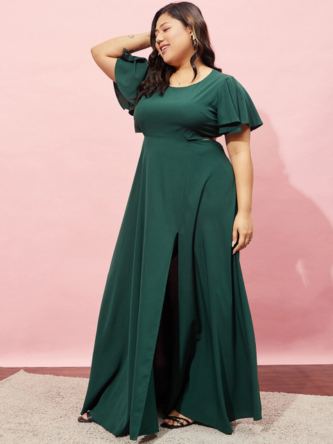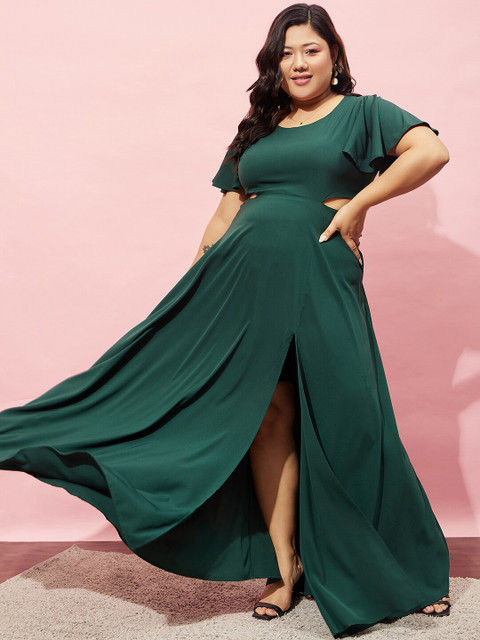 - Green solid maxi dress