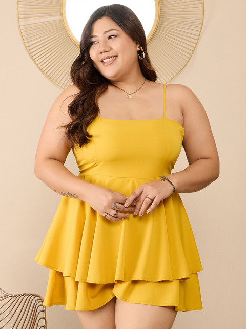 Yellow solid playsuit with layered