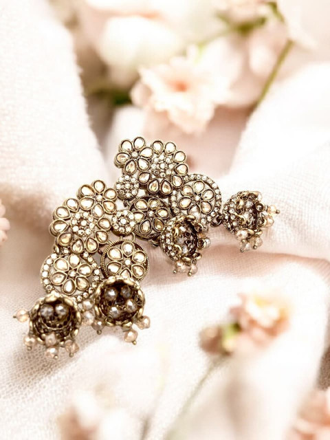 Gold-toned floral jhumkas, gold-plated