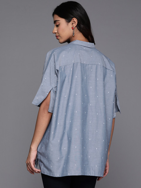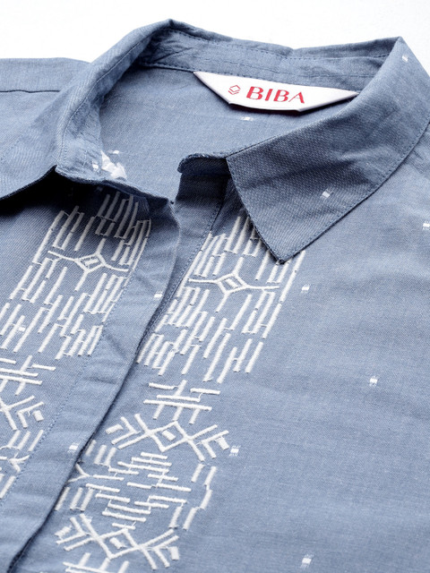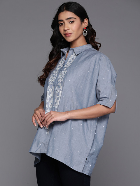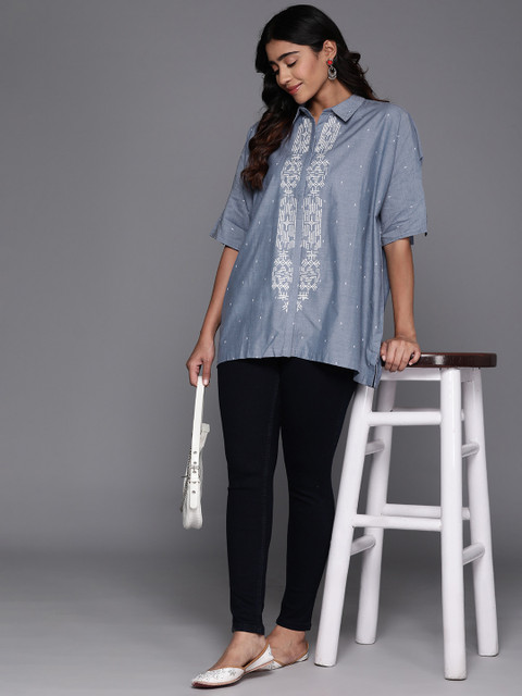 - Blue longline shirt style top