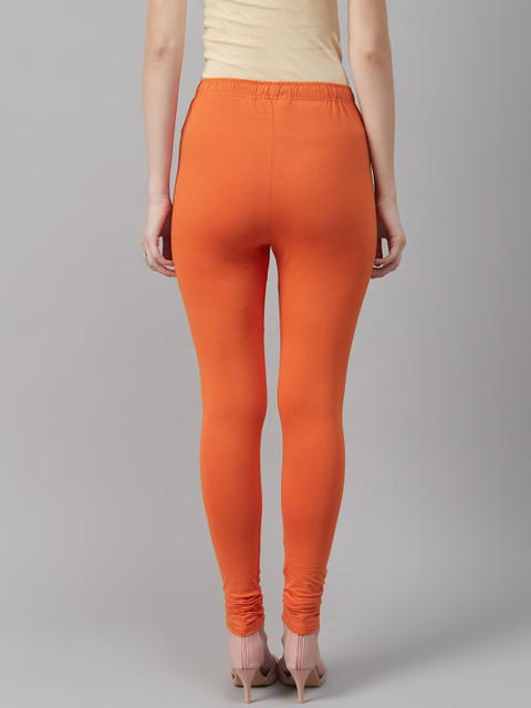 Orange solid mid-rise churidar length leggings, has an elasticated waistband with a slip-on closure