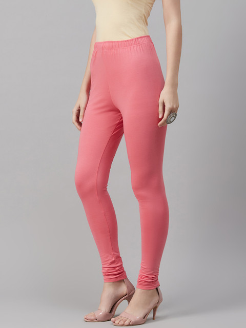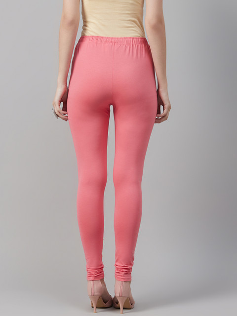 Pink solid mid-rise churidar length leggings, has an elasticated waistband with a slip-on closure