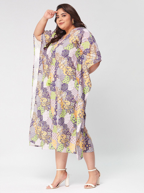 - Purple floral print kaftan dress