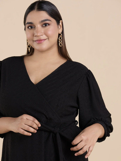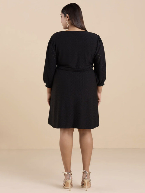 - Black polka dot solid fit & flare dress