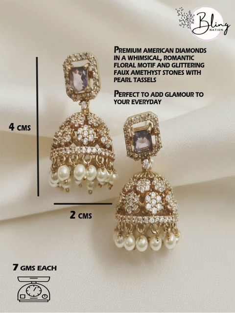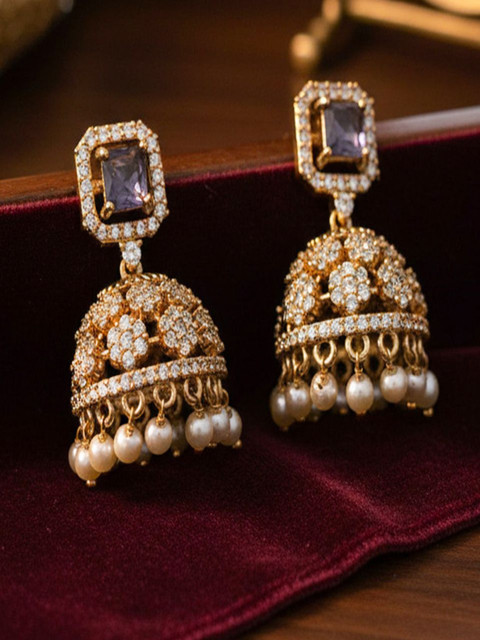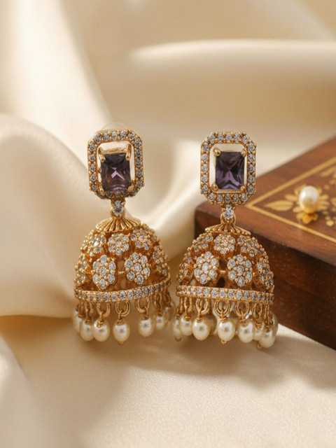 Gold-toned and Gold-Toned Dome Shaped Jhumkas, has American Diamond