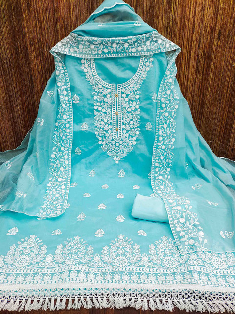 Grey and white embroidered unstitched dress material