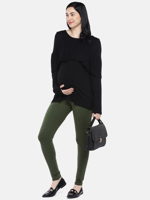 A pair of olive green solid churidar length leggings