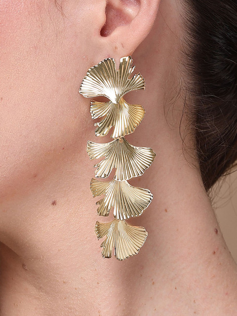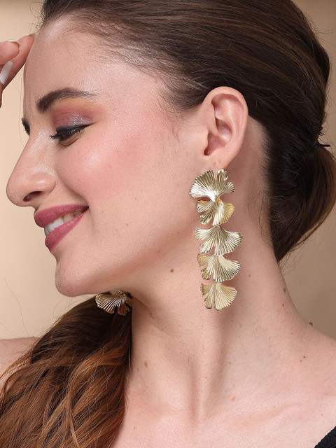 Gold-toned contemporary drop earrings, gold-plated