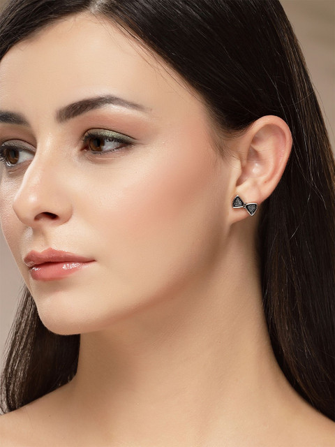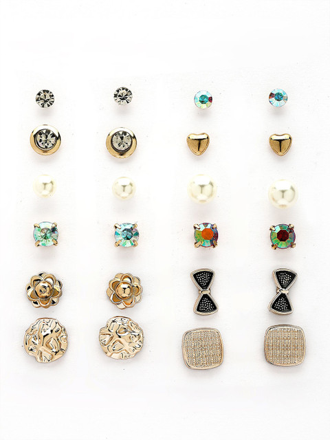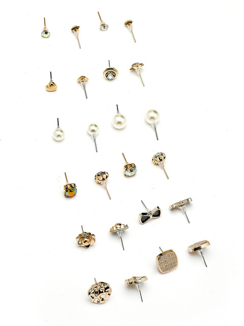 Set 2: Gold-plated and white circular shaped studs, has artificial stones studded details