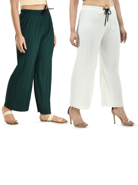 • Pack Of 2 Green and white knitted palazzos