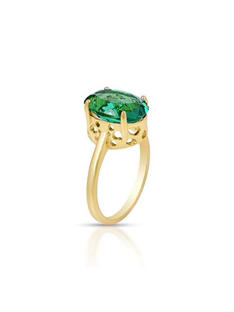 Brass Goldplated High Crown Faux Columbian Emerald Panna Fingerring Men Women