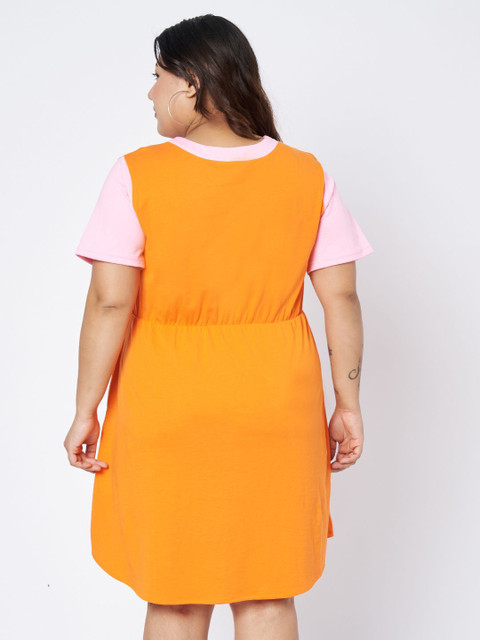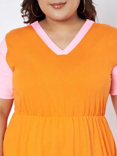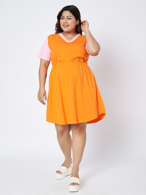 • Orange colourblocked fit & flare dress