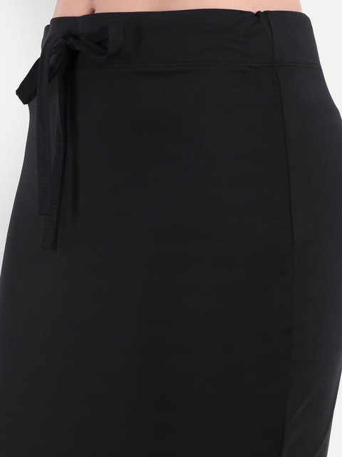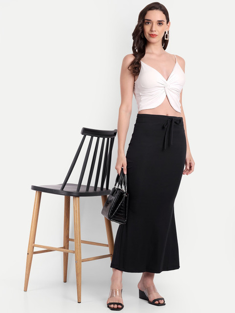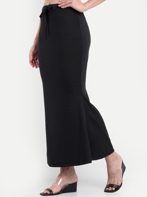 Black solid mermaid fishcut saree shapewear, has an elasticated waistband with inner drawstring closure