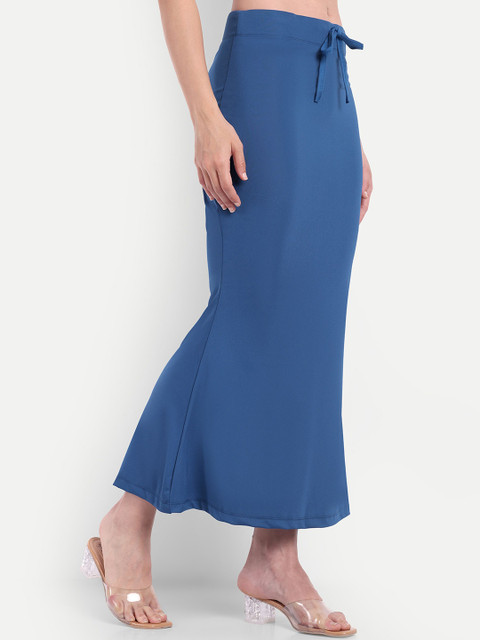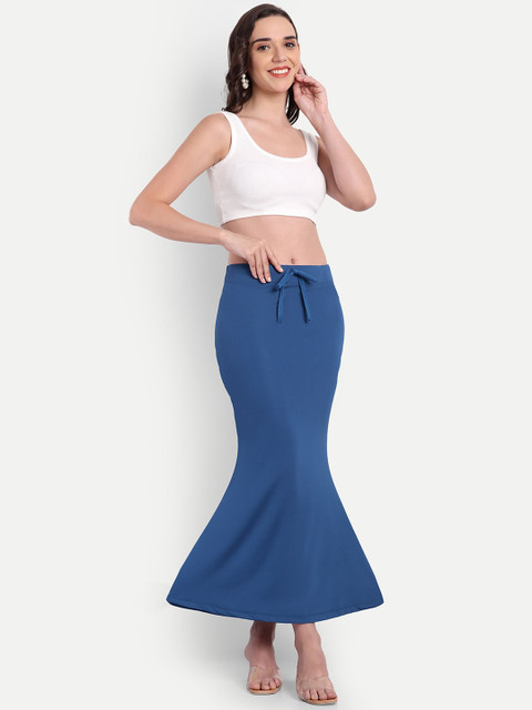 Blue solid mermaid saree shapewear, has an elasticated waistband with drawstring closure and, a flared hemline