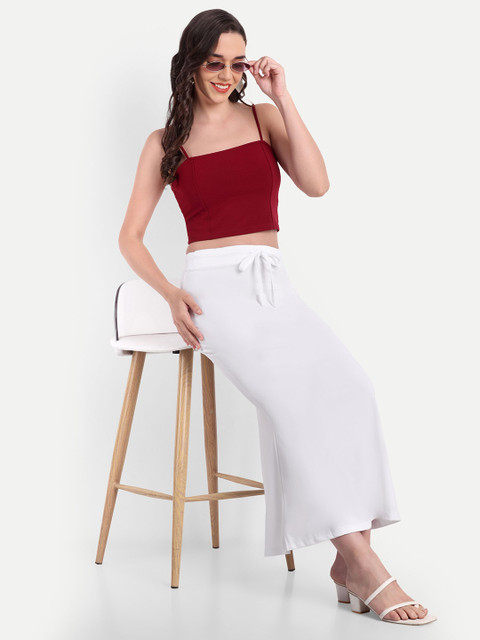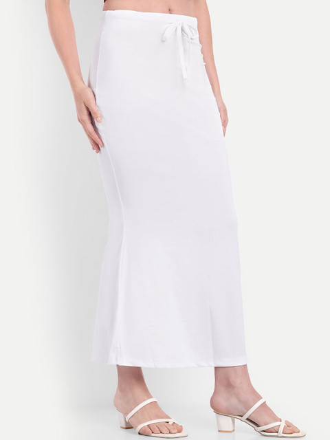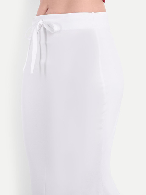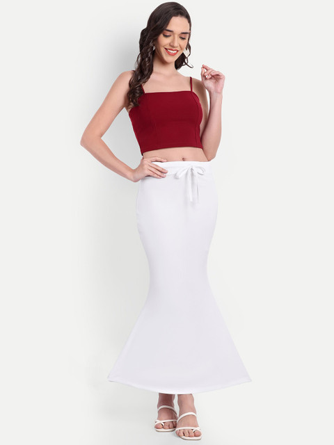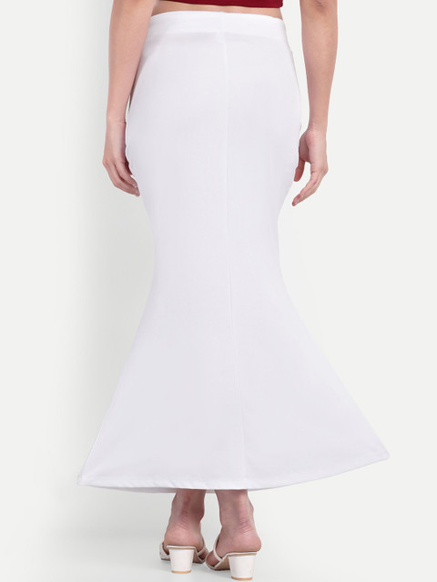 White solid mermaid fishcut saree shapewear, has a drawstring closure and, a flared hemline