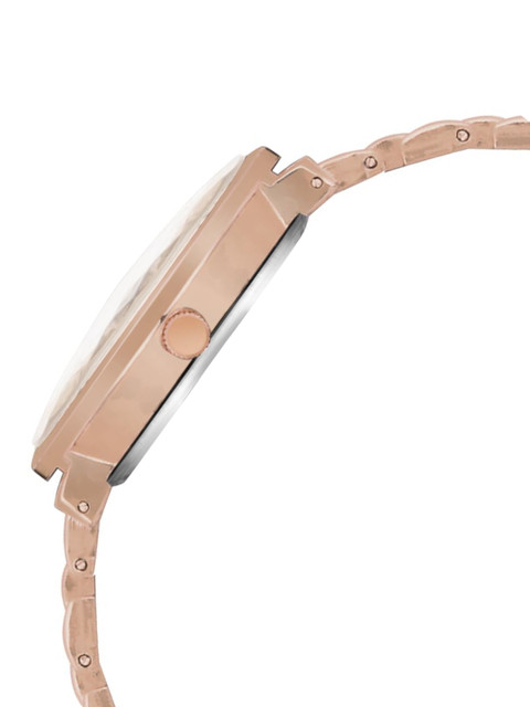 Strap Style: rose gold-plated, bracelet style, metal strap with a foldover