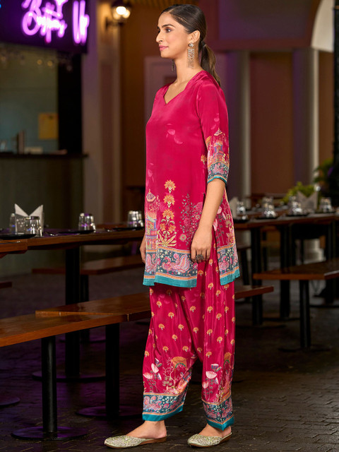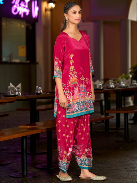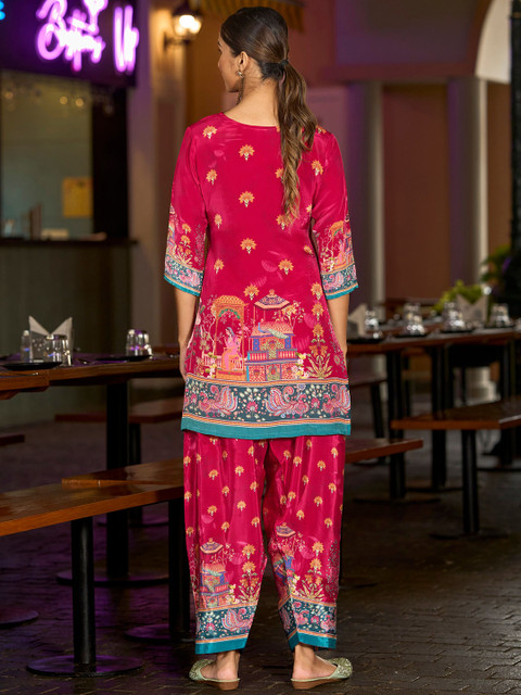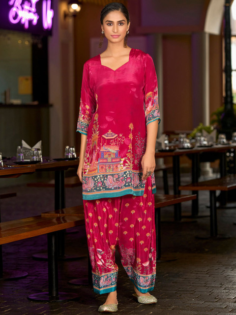 “Stunning Mojilla kurta & farshi salwar set! 😍 Deep purple with vibrant and beautiful pichwai print. Comfy & stylish for casual outings. Perfect blend of traditional & chic. 💖”