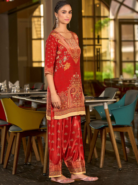 “Stunning Mojilla kurta & farshi salwar set! 😍 Deep purple with vibrant and beautiful pichwai print. Comfy & stylish for casual outings. Perfect blend of traditional & chic. 💖”