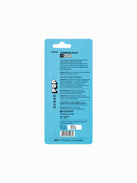 The SUGAR POP Longwear Kajal offers a rich, matte black finish that glides on smoothly, making it easy to achieve defined eyes in a single stroke. Its creamy texture ensures comfortable application without tugging, and the pigmentation is impressive for its price point. While the brand claims up to 16 hours of wear, some users may find it begins to smudge after several hours, especially in humid conditions. The kajal is water-resistant, but not entirely waterproof, so it may not withstand heavy sweating or watery eyes. It’s suitable for everyday