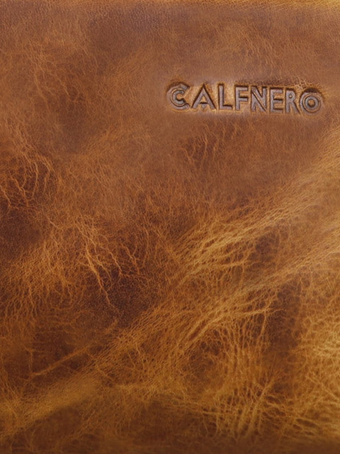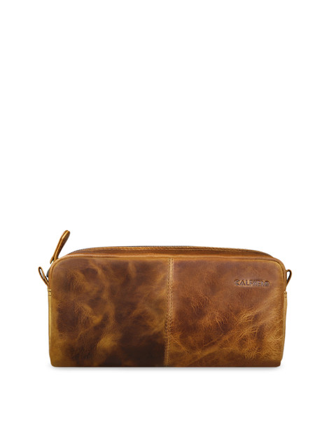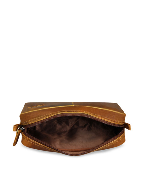 Brown textured travel pouch, has a loop on one side for carrying ease