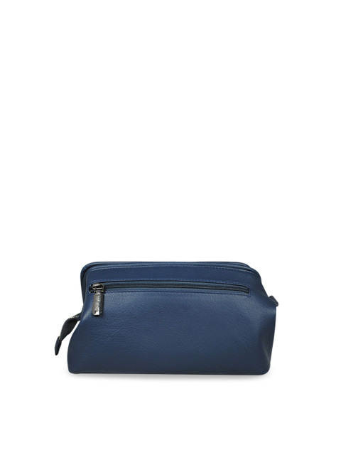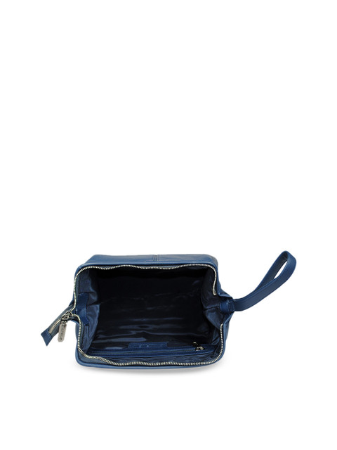 Blue solid toiletrybag, has a loop on one side for carrying ease