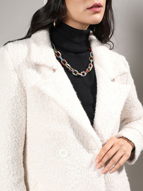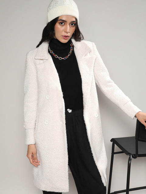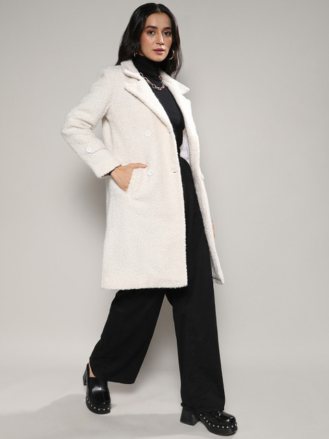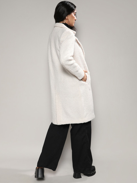 3 reviews for Campus Sutra White Self Design Notched Lapel Collar Longline Trench Coat