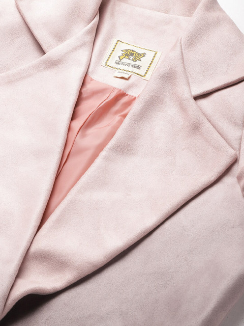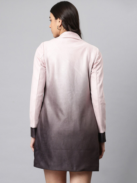 Pink and black solid regular-fit casual overcoat, has a spread collar, front open, long sleeves and two flap pockets